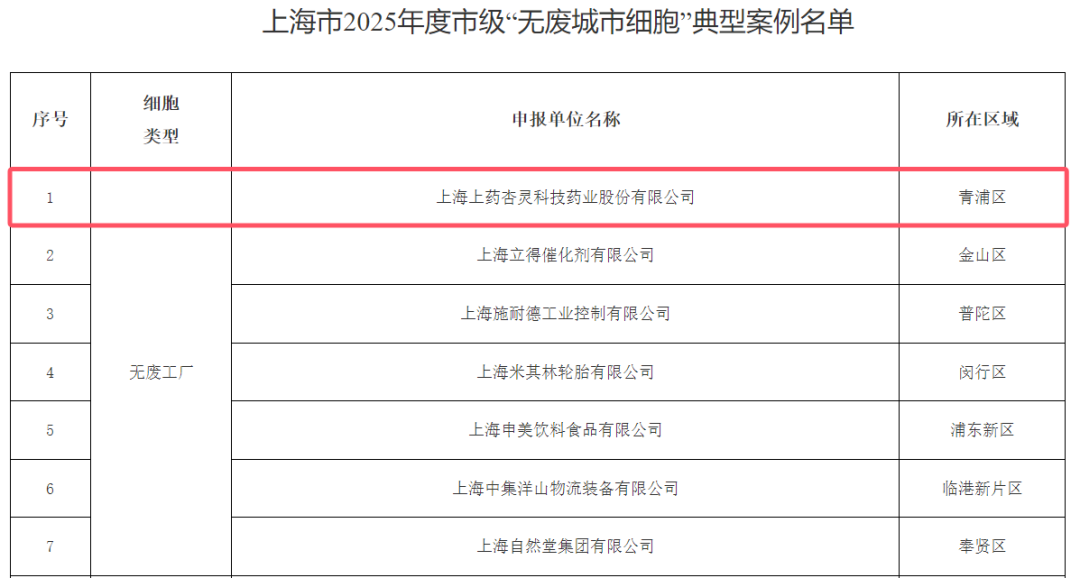 在助力“无废城市”建设的创新实践中,我们很荣幸携手上海上药杏灵科技药业股份有限公司,共同打造了上海市 2025 年度市级“无废城市细胞”典型案例的标杆项目。作为该批典型案例中的首家企业,上海上药杏灵科技药业在青浦区的“无废” 探索,凝结着双方在绿色发展领域的深度协作。